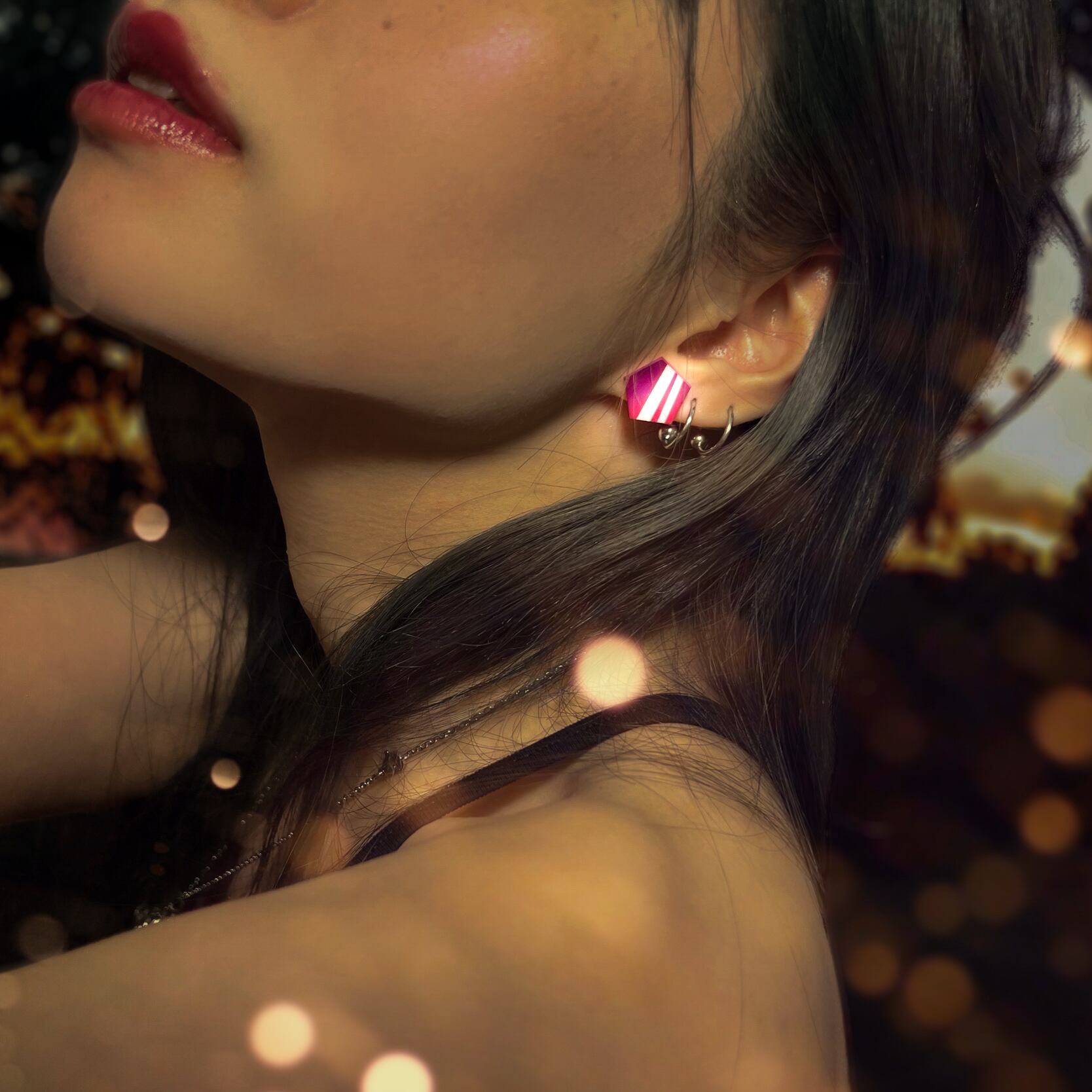 黄昏時をイメージしたチョコのようなイヤーアクセサリー。